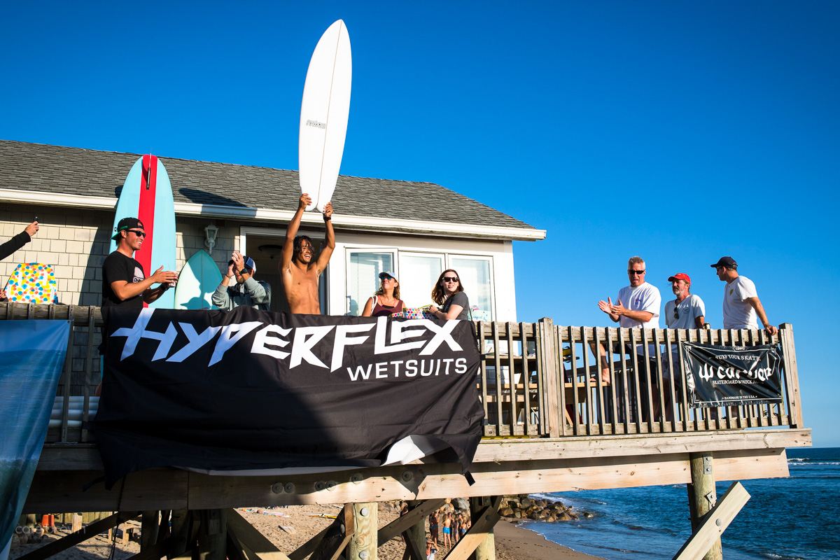 The young and talented New Hampshire surfer, Kai Nichols, took the day in the open division as surfboards and gear bags were passed around to all the winners at the end of competition.