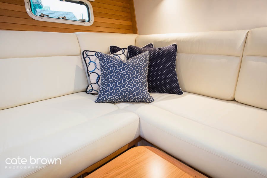 And for many people, the amenities a boat has to offer equates to greater freedoms to explore ocean waters far away from home and land. There can be so much comfort down below decks that you barely notice you're on a boat, and my photography recently brought me to some beautifully outfitted MJM powerboats as I photographed soft products for a client. It was a break from my typical seascapes and regattas but still presented it's own unique set of photography challenges.