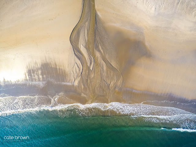 My absolute favorite type of aerial shot is an overhead composition also known as a vertical shot. They give a glimpse into a world only known by pilots, satellites and birds, and can offer unique perspectives of the world below. I focused on the beach, the waves, the shapes of the dark and light sand... I followed the water's edge along the rocky cliff of Bonnet out to the point and back.