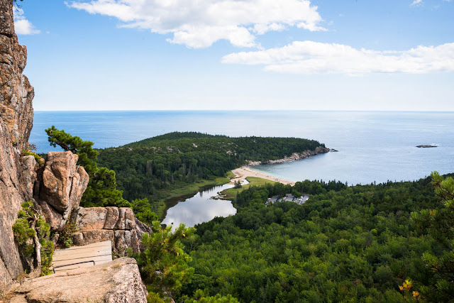 We kicked off the long weekend with a loop around Jordan Pond, a long stretch of pond nestled between two mountains. The best part of the trail was perhaps the western half, where it started with a "bog walk" across a delicate lakeside ecosystem, followed by a section of light scrambling over granite boulders. The trail finished with easy flat walking along the eastern side of the pond to complete the little loop. We were glad to have completed it once since it's a recommended trail for the park, but we were eager for more...