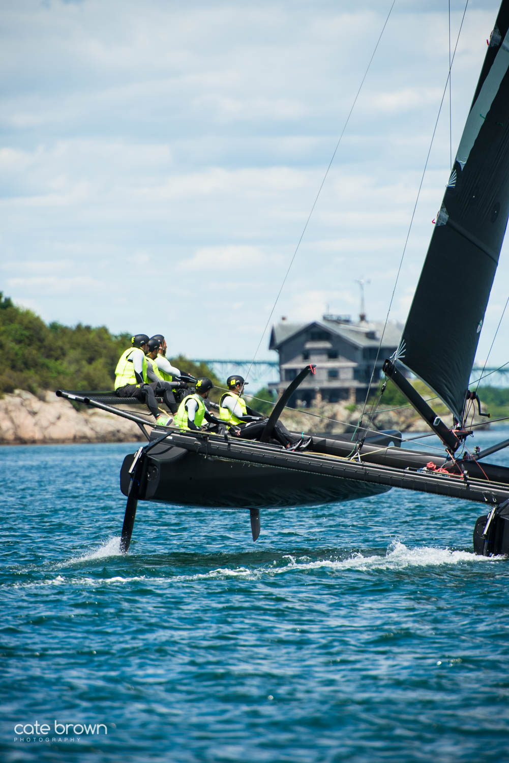Friday started with high winds in the morning that faded around noontime and were almost completely gone by mid-afternoon. I was out on the water with the M32 class catamarans. This new class of boat had 7 skippers for the NYYC Annual, and they were sent off racing with the second start of the day behind the Gunboats. These fast cats rounded the island ahead of everyone else and finished with enough time to do some class practice races by Rose Island before the next boats even crossed the finish line. I can't even imagine how incredibly they must perform in more than 12 knots!