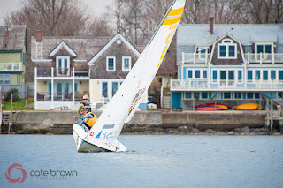 Well the second day out on the water was much better than the first. When it was cold and blowing 20 a couple weeks ago, the day I went out with the North Kingstown High School Sailing Team for their regatta against Rogers Academy was one of those first true days of spring. The sun was shining, the smell of fresh rain and budding trees was in the air, and you almost didn't think you needed a jacket (although any good sailor will tell you to bring it anyway).