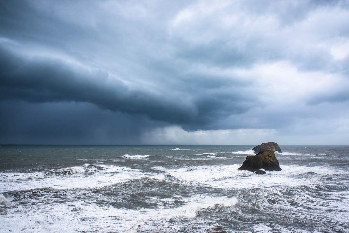It rained a lot over night.  Probably more than 1".  When we checked the weather report, the winds had peaked at 50mph gusts, and we were so glad we didn't drown in our tent overnight.  We were in the hotel in Fortuna, just outside Eureka, and while the forecast was for more rain and wind, there were breaks in the storm as it moved in bands up the coast.  We took the opportunity to drive about half an hour north to explore Trinidad.