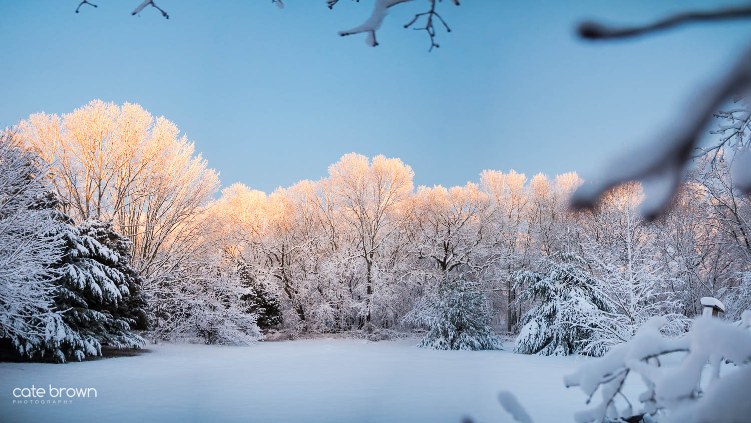 I was in the middle of cleaning off my car when I noticed the end of the cloud line and the setting sun. I saw it coming and waited patiently... until I had just a few minutes to run inside and grab my camera. As the clouds started moving away to the east the sank lower in the west, there was only a 15 minute window when everything aligned just right. The freshly dusted trees began to light up in a wintery light show like no other! Then the clouds chimed in with bright pinks and oranges. I ran around the yard for all of those 15 minutes before having to get in the car and drive away.