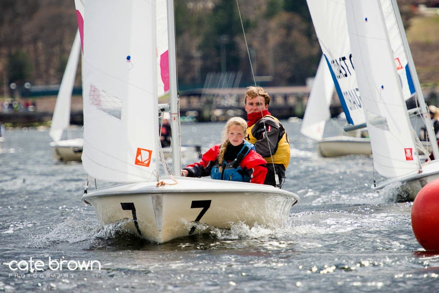 First up, on Saturday, was the Connecticut High School State Championship. Conditions were cool and cloudy with a very light and shifty breeze from the north. All day the teens struggled against the infamous river current by Jacob's Rock, which seemed particularly strong for this event. With about 5 knots of breeze, and probably 3-4 knots of current flushing boats towards the ocean, it was a race for the most apt boat handlers. The current made upwind progress nearly impossible and the only sailors who could roll tack would manage to eek by the windward mark which was set in the middle of the river and in the strongest currents. But there was no calling the race off when progress was slow, this was a one day event. They had to manage every race they could, no matter how painfully slow the sailing was. Everyone kept in good spirits though, and it was a lighthearted event full of friendly high school competition. Choate came out on top with bullets almost all day and half the number of points as the second place finishers, Hotchkiss. Full results at http://scores.hssailing.org/s14/connecticut-state/