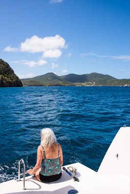 This new anchorage has a strong prevailing wind, so we weren't swirling around on our mooring for once. And the waters were much flatter compared to the main harbor at Bourg des Saintes.