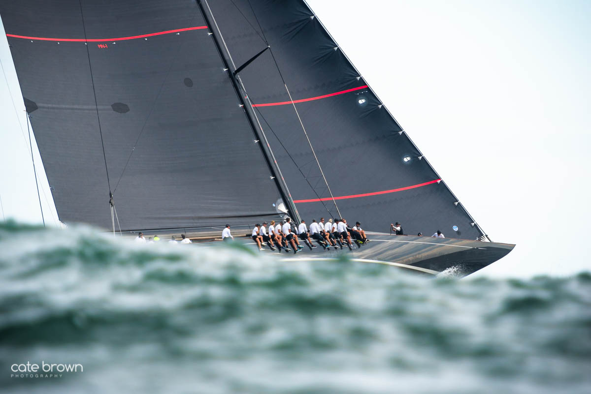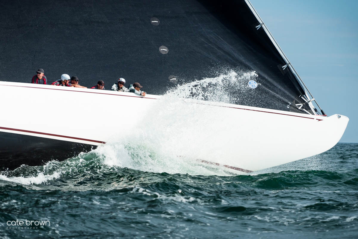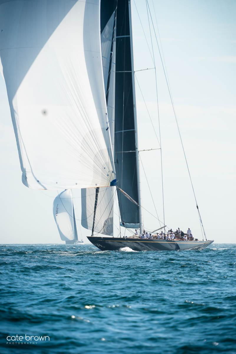 I was out on the water for the first two days of racing where we saw the most wind for the week, coupled with late starts and fog. Day One was the distance race through the East Passage of Narragansett Bay, starting offshore of Beavertail, passing through Newport Harbor, around Gould Island, and back to showcase the spectacle that is J Class racing. The breeze was light, around 7-10 knots. As the starting sequence counted down, the enthusiasm felt by everyone on the water was palpable. Velsheda, perhaps a little too eager to start race one, managed to take off a decent amount of bottom paint at the start as she glanced off the race committee stern. Soon enough, everyone was underway, beating upwind through the fog. The sun started breaking through as the boats came by Beavertail and the Newport Bridge, before fog rolled back in for the finish. While competition was tight throughout most of the course, Hanuman, skippered by local legend Ken Read, won the day for this 20nm race.