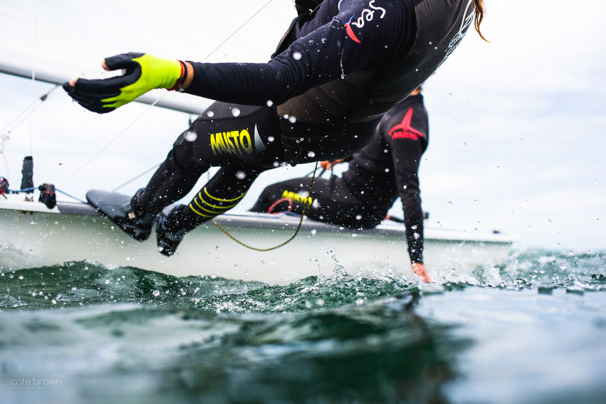 We photographed on a somewhat overcast day.  As I motored over from Wickford the wind was looking strong with a southerly seabreeze, but as I met with the ladies in Newport around 2pm it was starting to taper off to a steady 10 knots.  We played around with the chase boat for a little while before I anchored and hopped in the water for some water shots. For two sailors who had only met a couple months ago, they were already looking like a pair who had been sailing together for years.  It will be so exciting to watch their campaign progress over the next few seasons!