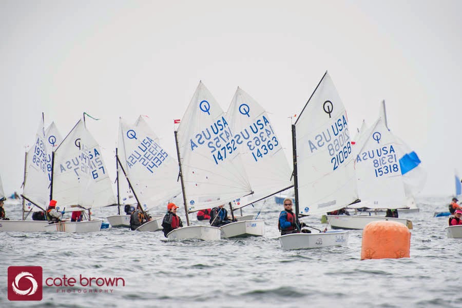 While the first week in May saw unseasonably warm temperatures reaching 80°F, the day of the Youth Challenge was overcast, foggy, and rather chilled. Luckily postponement only lasted about an hour as the gentle Northerly gave way for a South Easterly bringing in cool ocean air from the Atlantic. With a rather consistent 4-6 knots of breeze several races got underway for all the junior classes.
