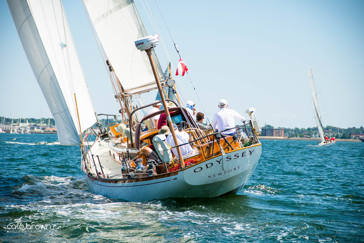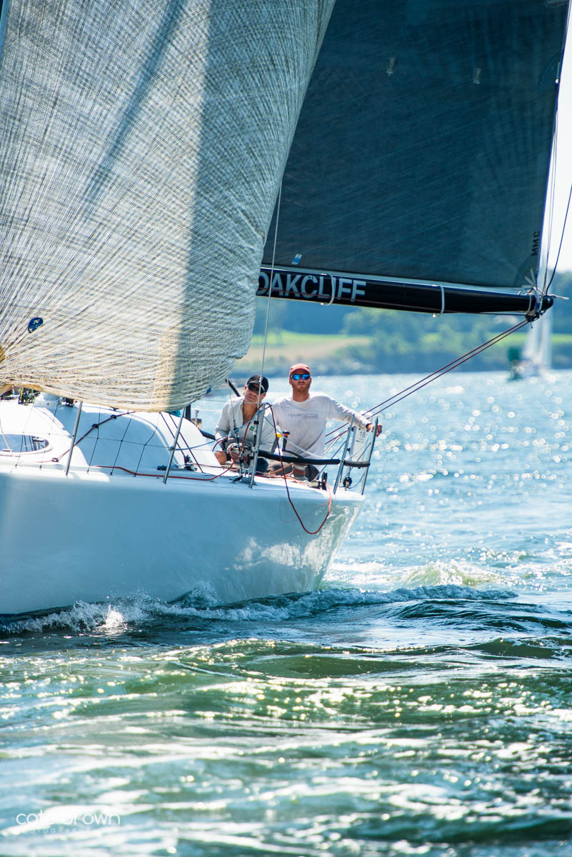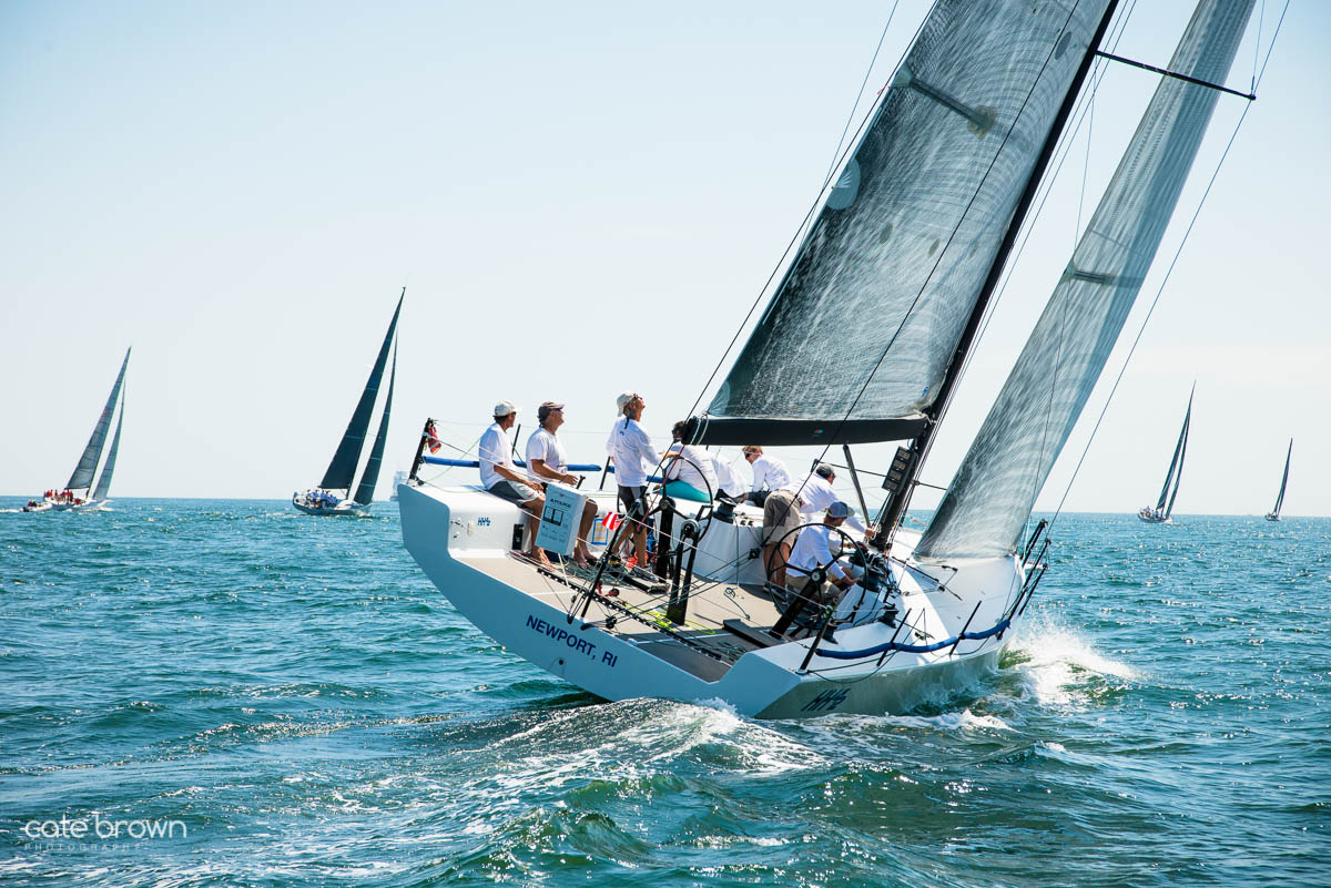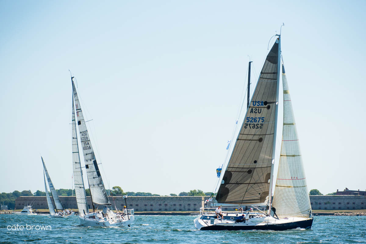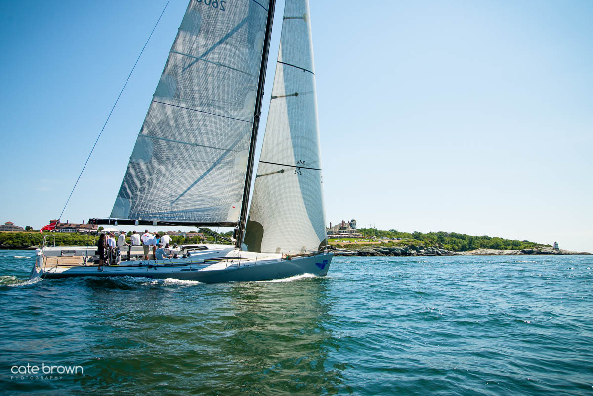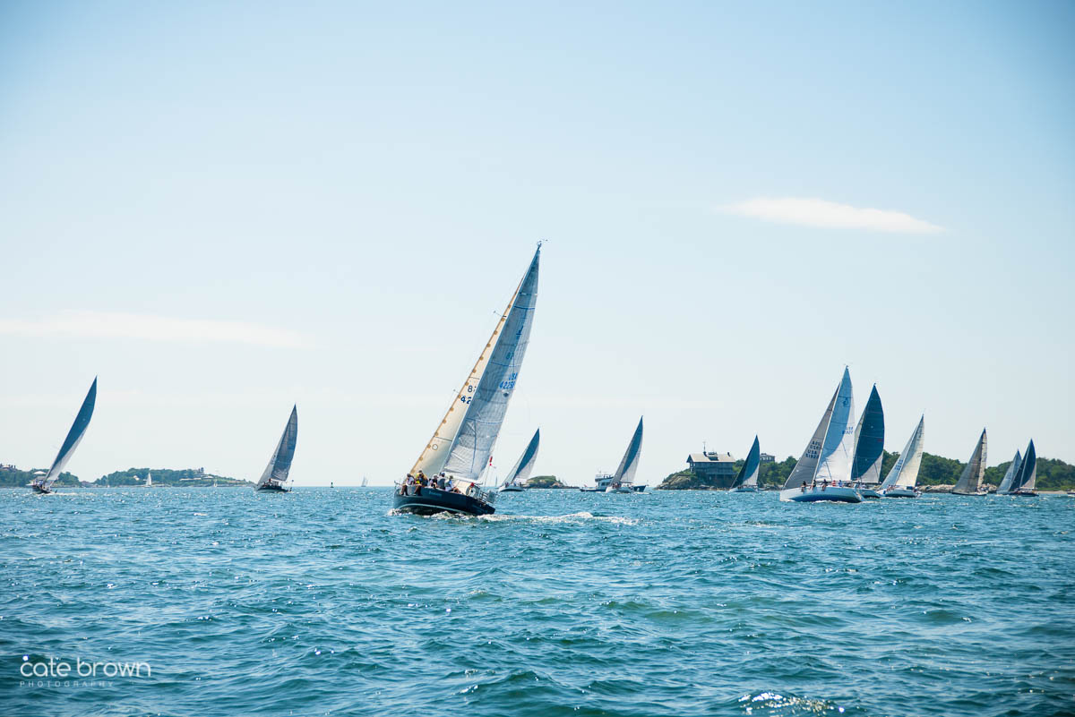 The start was held on a Sunday afternoon to beautiful conditions. The breeze was perhaps a little light, but it was a gorgeous day as the boats sailed south past Fort Adams and Castle Hill before heading out to sea.