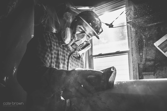This photo was taken in the last weeks of 2015 as I photographed surfboard shaping for the first time. While I have several shots of the tools, the hands and the board, this photo captured more than just the act of surfboard shaping for me. This personal project for Lyle became a photographic project for me as I watched him cut, shape, and sand the foam blank of what will soon become my very own handcrafted-by-Lyle longboard. It means a lot to be given a gift by someone close, and even more when that gift is created by loving hands.