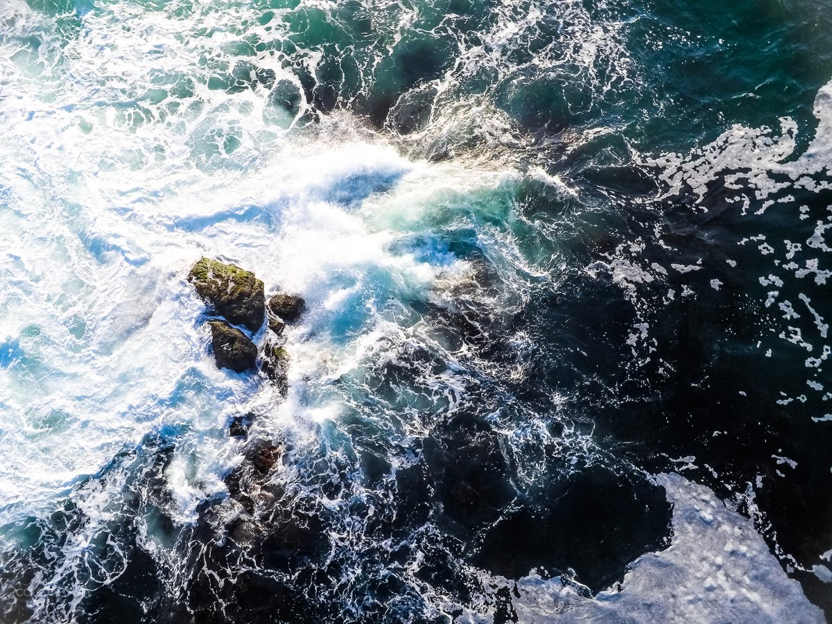 Different tides can expose different rock formations, and this particular morning with low tide and a bit of wave action, I launched off Ocean Drive to explore Brenton Point. As I pushed the limits of my signal distance, 1km offshore from the road, I approached an outcropping of rocks where I could see water splashing in the distance. I was getting more and more excited by the photographic possibilities and just praying my signal wouldn't drop out and force my drone home!