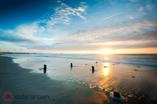 I've done shoots in Narragansett for surfing, at twilight and dusk to capture the Towers, but I had never gone for a sunrise seascape shoot until recently.  These were two separate visits to Narragansett Beach during low tide.  The first was at dusk as the clouds rolled in and the sky turned pale pink.  With extra sand removed from the beach after the hurricane, the old pillons and remnants of Old Narraganset Pier seemed more exposed.