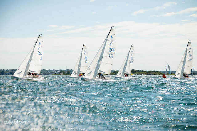 Conanicut Yacht Club's annual Around the Island Race circumnavigates Conanicut Island every Labor Day weekend. This is an end of season event for many sailors, and allows for a last friendly hoorah with mostly PHRF and a few One Design fleets. This year's event was slightly unusual compared to most years, as a stiff northeasterly breeze hung around most of the week through the weekend. Rain and even stronger winds were forecasted, but come race day it was a 20-25 knot breeze with no rain in sight!