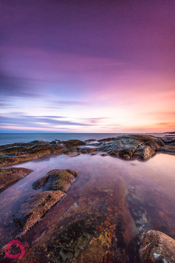 I discovered these large bluffs of orange rock back in high school but had only photographed here a couple of times. I found a tide pool and set up my camera with time running short and the tide moving in. I played with a couple different compositions but was working with beautiful 4 minute long exposures. You would never know there were small waves that day looking at these shots! The color was naturally enhanced from the long exposure, per usual.