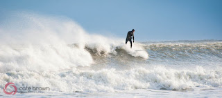 So there was this day in December just before Christmas when it was blowing about 40 knots and the clouds were trying to decide whether they wanted to snow or not. And I went out shooting! First it was to this little spot along Route 1A for some of the surf. The surf was up to about 5+ with a nice offshore breeze but a lot of the usual places were pretty crowded, so a few friends of mine used their local knowledge to locate one of the more obscure locations for a nice private session. It was pretty cold out but I nestled behind a rock to block some of the wind and using my 70-200mm with 2x teleconverter I got some great shots of the water, waves and surfers!